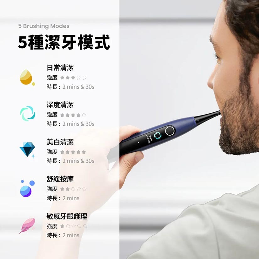 3. 5種潔牙模式,滿足各種需求