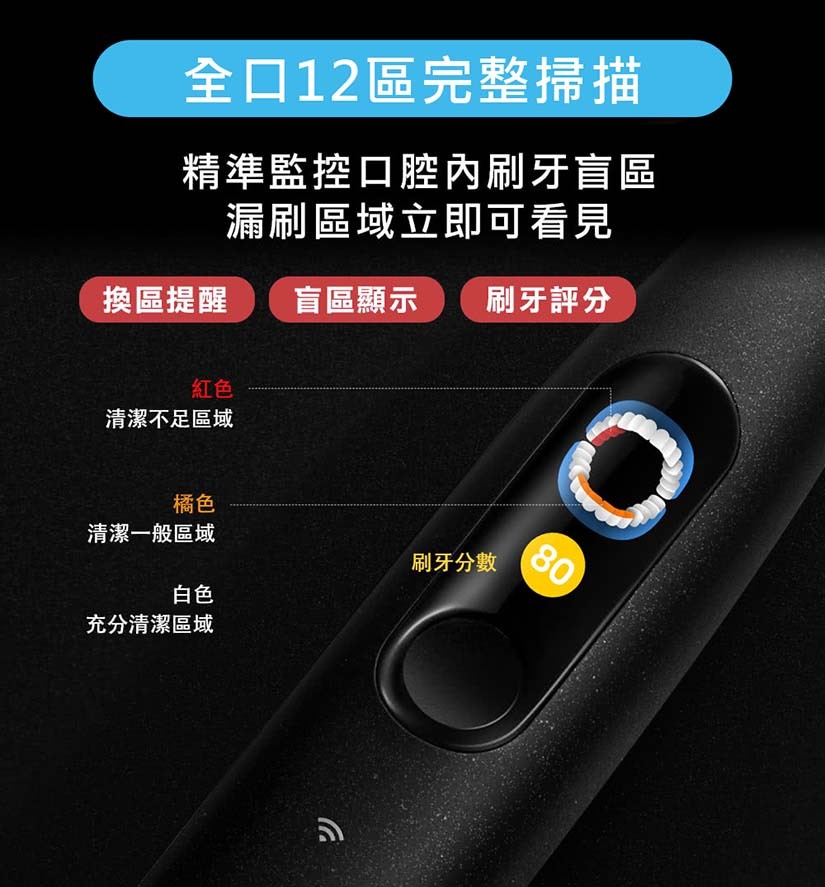 3. 12區精準全口偵測,告別刷牙盲區